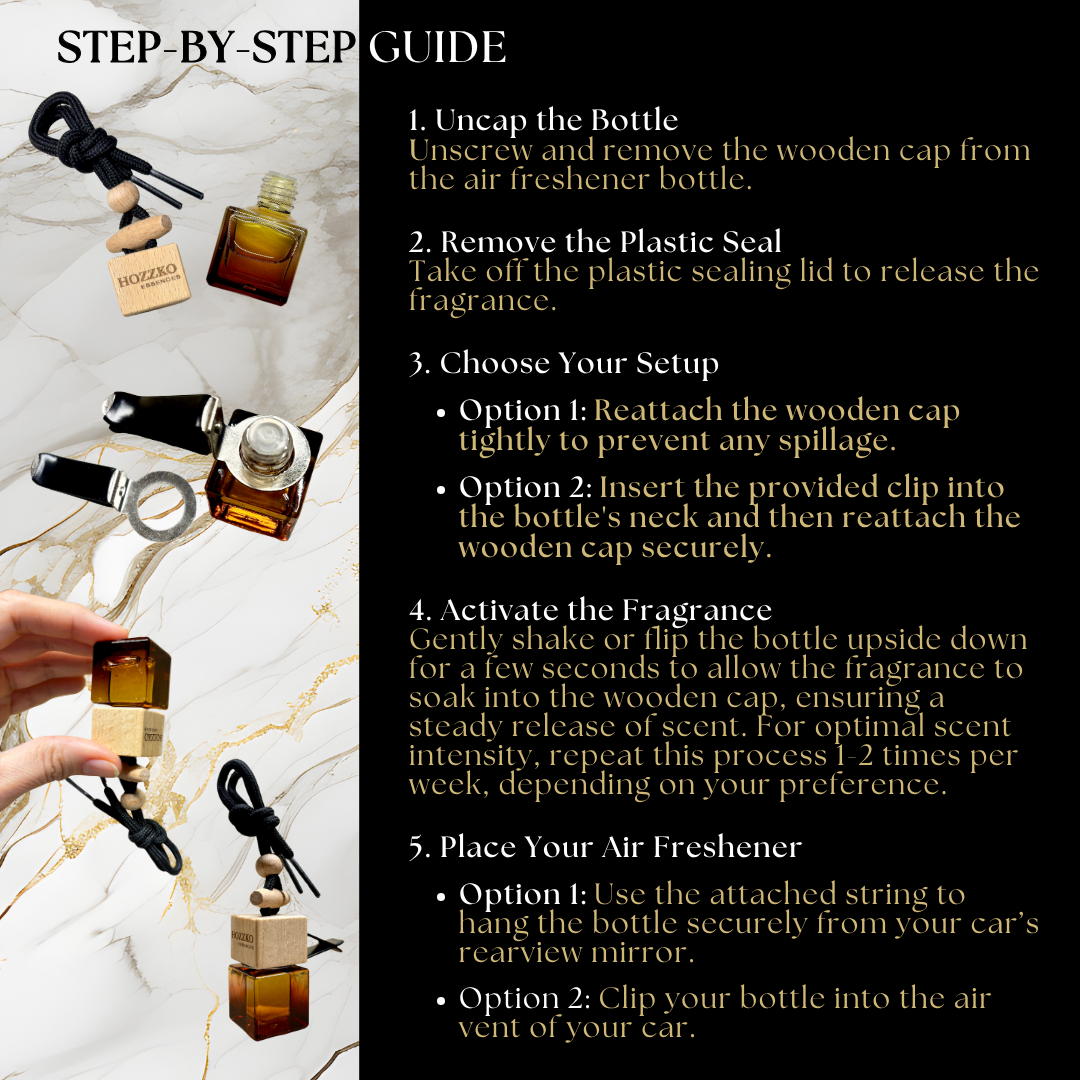 Enhance your journey, every time. Hang your bottle from the rearview mirror or clip it into the air vent. Now take a deep breath and enjoy your delightful fragrance filling your car.